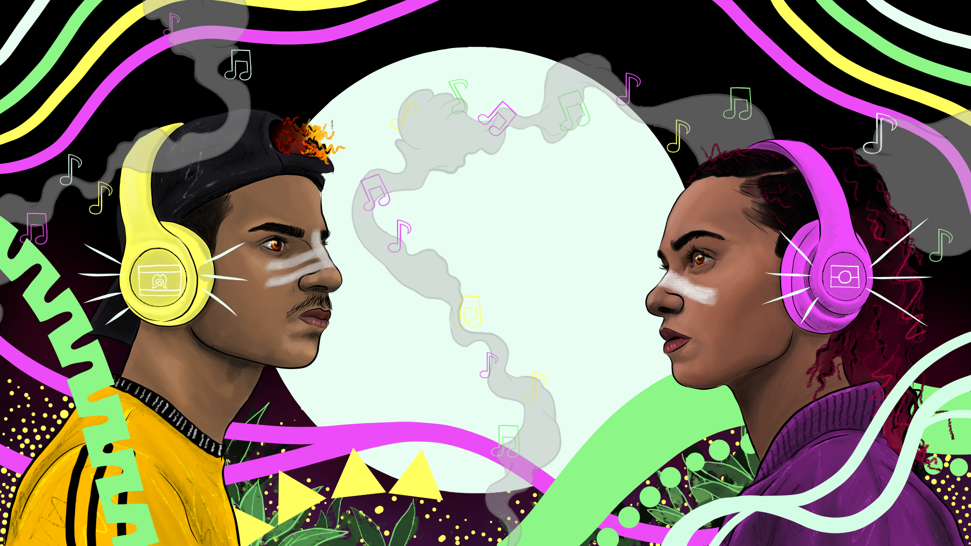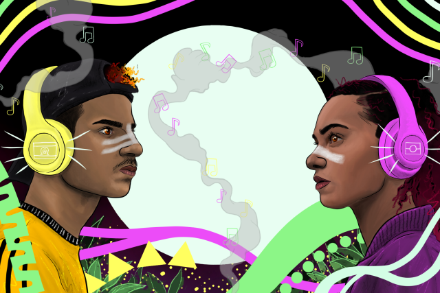 BIGSOUND First Nations House presented by Spotify is also honoured to feature artwork by Dylan Mooney: a Yuwi man from Mackay, central Queensland, Torres Strait Islander from Darnley Island and Badu Island and Australian born South Sea Islander. “This artwork represents the importance of music for Indigenous peoples,” said Dylan, “our people create songs to tell stories, to share our cultural knowledge and to bring awareness to the wider community.”