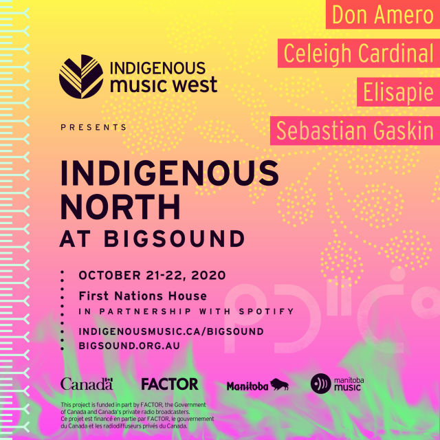 There will also be a special performance presentation by Indigenous Music West at Manitoba Music. Filmed in Treaty 1 Territory (Winnipeg) and the traditional and unceded territory of the Kanien'keh:ka of Kahnawà:ke (Montréal), Indigenous North will offer electrifying performances and interviews for an intimate picture of outstanding artists from those regions, including Celeigh Cardinal, acclaimed country singer/songwriter Don Amero, Inuk singer/songwriter Elisapie, and multi-instrumentalist R&B artist Sebastian Gaskin.